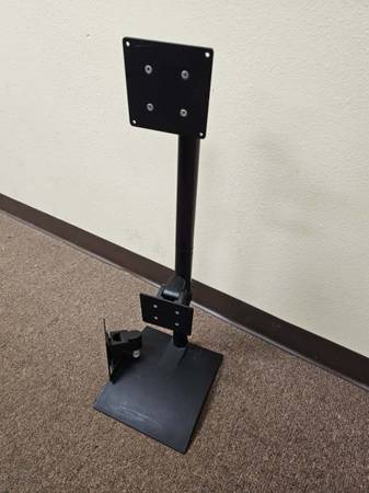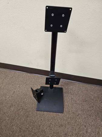 Please call 30” tall multiple monitor desk stand Vertical placement 3 monitor mounts View screens top to bottom for a productivity boost, and customize your desk stand with modular component parts