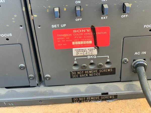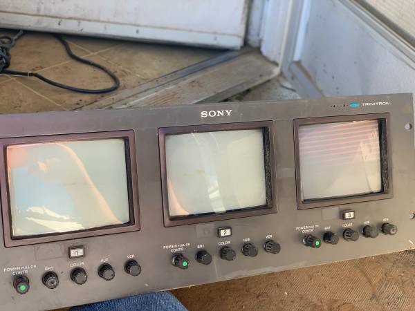 Sony PVM-5300 Trinitron triple color video monitor in good physical condition. Number one and three monitors turn on, number two does not.