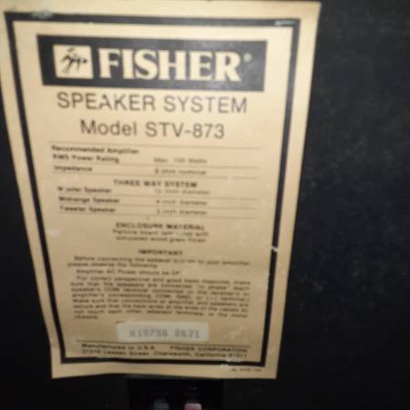 Pair of Fisher floorstanding 3-way speakers in good condition. One small speaker is cracked.