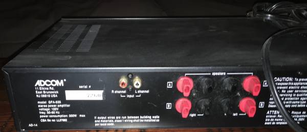 ADCOM GFA-535 Stereo Hi-Fi Power Amplifier: 120 watts (60w per channel) in excellent condition. cash or zelle, thanks...