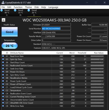 WD Model.WD2500AAKS - very low hours. Was in storage for a while - see disc report