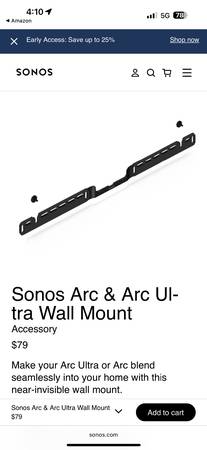 I got this Sonos Arc and Arc Ultra Wall Mount, but never ended up using it. Perfect if you have the Sonos Arc TV Surround Sound System. Compare online at $79 plus tax and shipping! Thank you for...