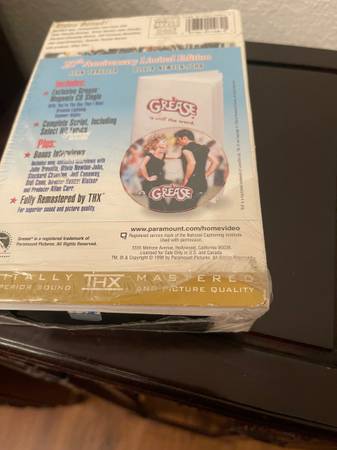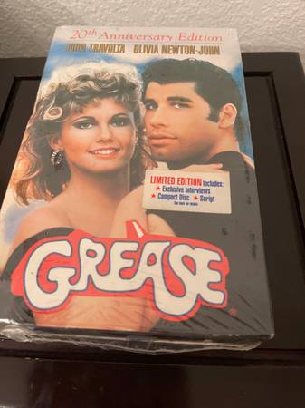 Up for sale a sealed brand new Grease movie limited edition 20th anniversary release in 1998 and the package comes with Interview CD with John Travolta and Olivia Newton Jones and Scripts, the plot is in 1950’s about a high school student falling in love with a Australian student vacationing in US. …..