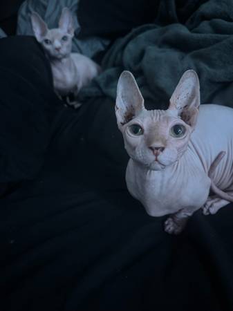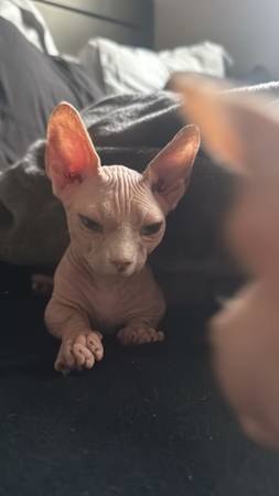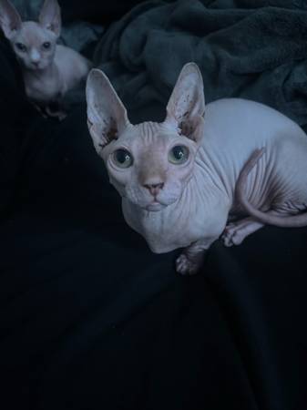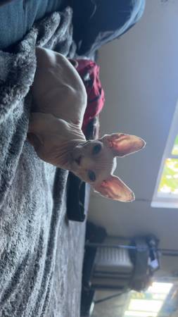 16 week old bambino sphynx male Two pink males one with white fur on the nose Extremely playful and energetic kittens. Potty trained and weaned from milk. First set of Vaccines and health check from...