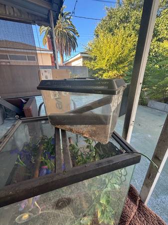 Old reptile cage I kept a chameleon in. Selling as is with everything in it. +the cricket cage