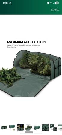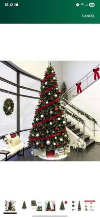 12 foot tall tree in great condition, comes inside 2 red Zober storage bags. I bought it in 2023 and have only used it once. It's a wonderful tree I just don't need it anymore. :) Happy holidays!