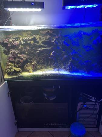 For Sale Red Sea Reefer 425 Saltwater Fish Tank still Water and available use for fish, Aquarium with Overflow and Fully Plumbed and Stand, Bio-Fil 1 Wet Dry Sump Filter, Skimmer with pump, 2 lights, Pump, Chiller, Heater, and Live Sand for only $2000!