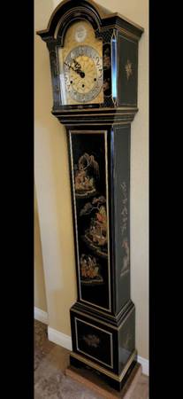 ELLIOTT OF LONDON CHINOISERIE GRANDMOTHER CLOCK MADE IN LONDON, ENGLAND HANDPAINTED CHINOISERIE STYLE EXCELLENT CONDITION POLISHED, CLEANED AND PROFESSIONALLY MAINTAINED. PRIVATE PARTY ASK FOR JACK.