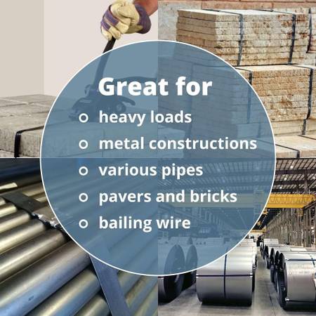 【FOR EXTRA-HEAVYWEIGHT LOAD APPLICATIONS】 Steel (metal) strapping is perfect for heavy-duty applications such as bundling together various metals, roll end binding, pavers and bricks, baling wire, securing packaged glass and pipes, metal billets and timber, and other materials