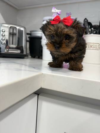 10 week old yorkie female babies. Will come with their first set of vaccine and deworming. Vaccination record will be provided. They are using pee pads and are crate training.