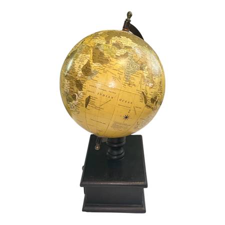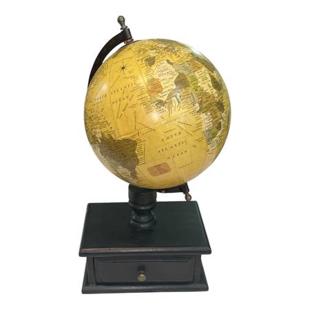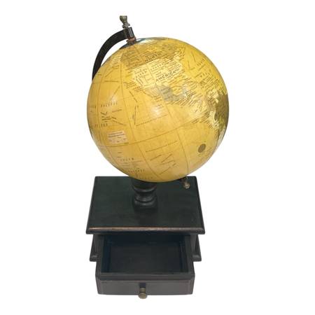 Add a touch of old-world charm to your office or study with this vintage-style tabletop globe. The globe features classic cartography in muted tones and sits atop a sturdy wooden base with a functional pull-out drawer—perfect for storing small items like paperclips, keys, or trinkets.