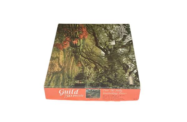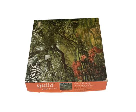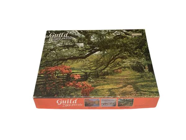 This is a Vintage Whitman Guild 750 pc Magnolia Gardens South Carolina Jigsaw Puzzle Measures 16" x 22" Used. Complete. Box Has Wear. Otherwise, Good Condition