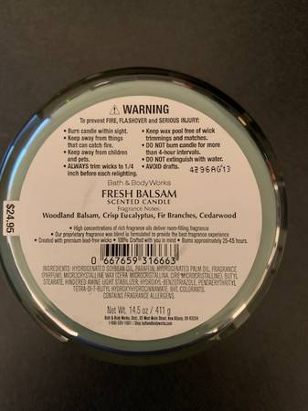 Bath & Body Works Fresh Balm 3-wick candle. NEW. Fragrance What it smells like: crisp and fresh, like walking through the woods. Fragrance notes: woodland balsam, crisp eucalyptus, fir branches...