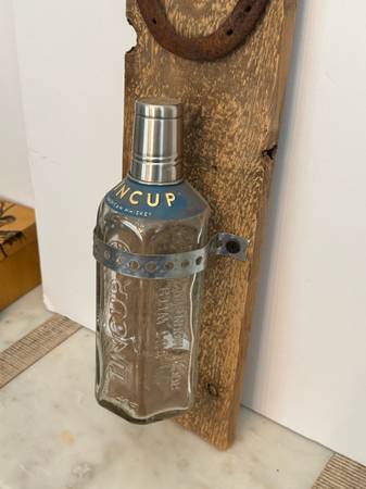 Rustic Handcrafted Horseshoe and Whiskey Bottle Decor 23”L x 5.5”W x 0.75”D Super Cool and Rustic Western One of a Kind Item! Perfect for a Man Cave!