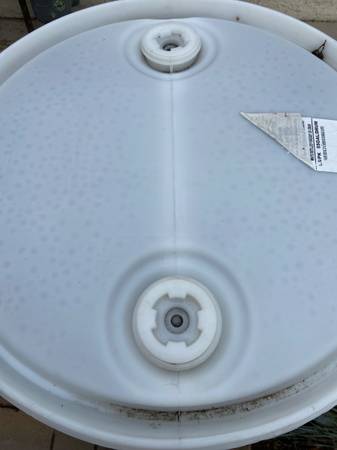 55gl food grade used White barrel with Spigot. Delivery available. Text for quote.