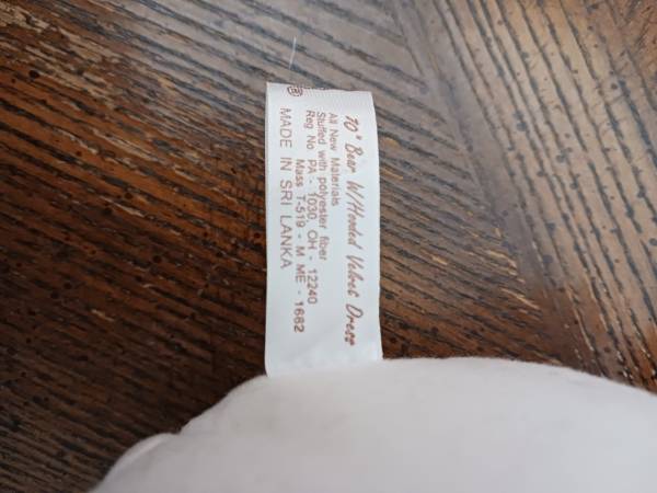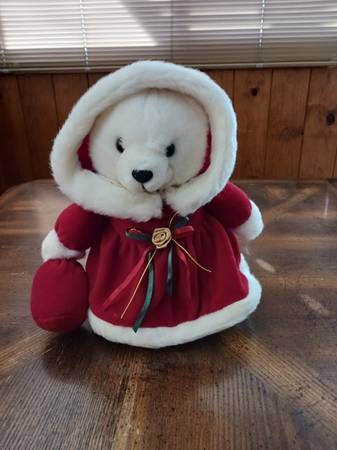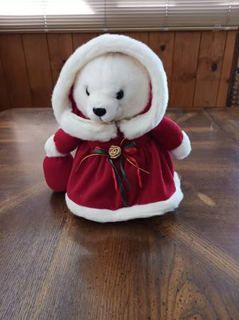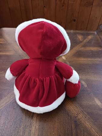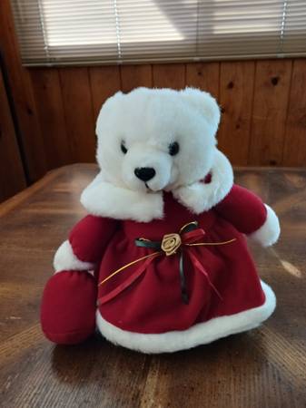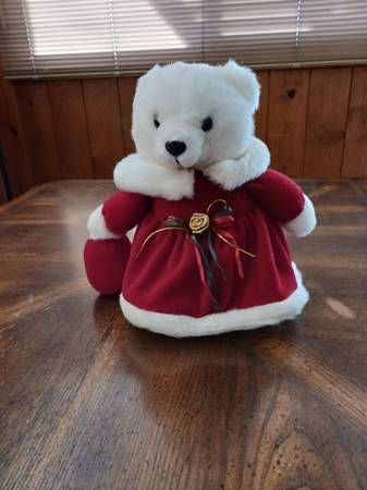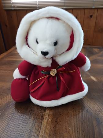 Christmas Polar Bear Stuffed Animal 10", Red Velvet Dress.