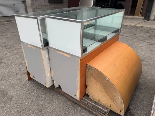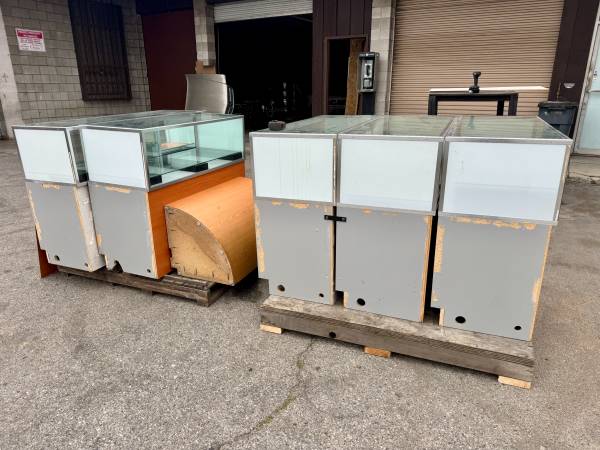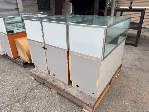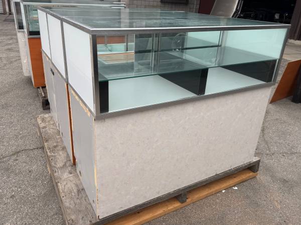 I am selling this *CLEAN* - RETAIL STORE SHOWROOM JEWELRY SHOWCASES. These showcases came out of a retail jewelry store. Dimensions are clearly posted in the photos. You are getting 4 of the exact same size showcases, and 1 a bit longer than the rest. TOTAL OF 5 SHOWCASES FOR $800. They all come with their doors and mirrors. I also have locks and they are all keyed alike.