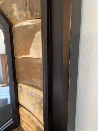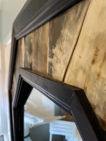 Beautiful one of a kind octagon mirror with bone / shell frame I believe it is about 35” or 36” w