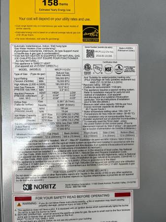 Used Noritz Tankless Water Heater Dust & Scratch Free...