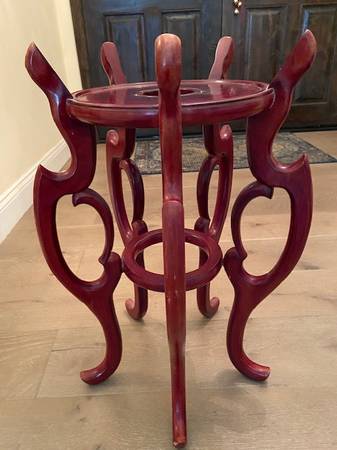 14.4 Inch Porcelain Chinese Fishbowl Planter WITH WOODEN STAND Painted by hand. For indoor use only •Top opening: approximately 11" in diameter Stand height 25.5 inch Vintage IN good condition. Call...