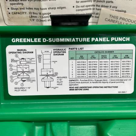 (New) Greenlee 229 9 Pin D-Subminiature Panel Punch DB9 D-sub RS-232