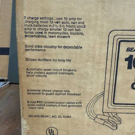 (New) Sears 10/2 amp 12 Volt Manual Battery Charger, NEW Old Stock -USA-