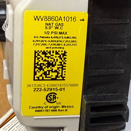 RESIDEO WV8860A GAS CONTROL ULTRA LOW NOx, BRADFORD WHITE