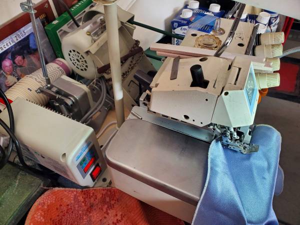 Juki model 2516 set up for three thread work, merrow edge, perfect for fine, napkin or table cloth or bridal work, portable w servo motor, quiet, adjustable speed control, or can be restored to 5 threads, portability engineered for great for small spaces, use by hand lever or by foot pedal....$995