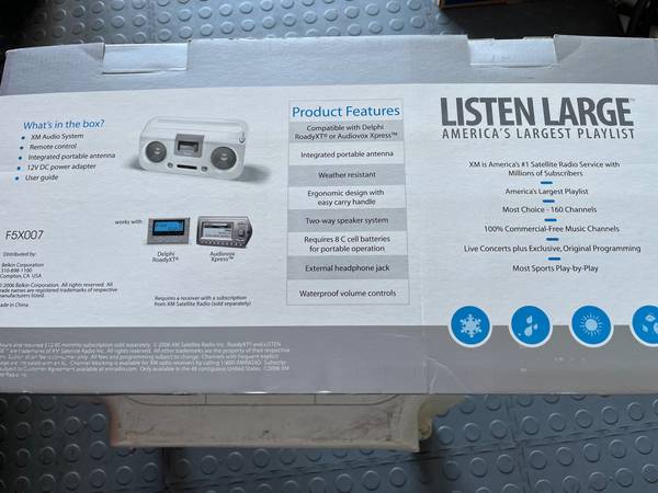 Sirius XM audio system includes Belkin boom box, Pioneer Inno portable satellite radio, car kit. Parts included are listed or pictured on the boxes. No missing parts. All user guides included....