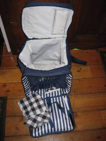 Soft shell insulated picnic cooler with utensils , plates, wine opener and napkins. $30. NO TEXT. Call Tommy Bahamas cooler with stand. $70