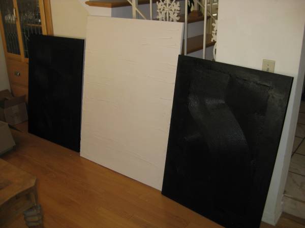 Three Canvas Modern Paintings- Two Black (30'x40") One White (36"x48"). All three for $50.