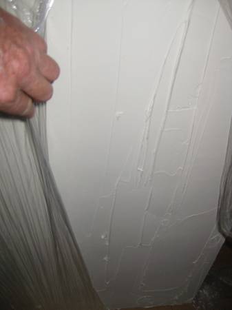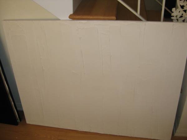 The texture material on the canvas appears to be dry wall compound covered with white or black paint. Very modern and affordable art for your living space.
