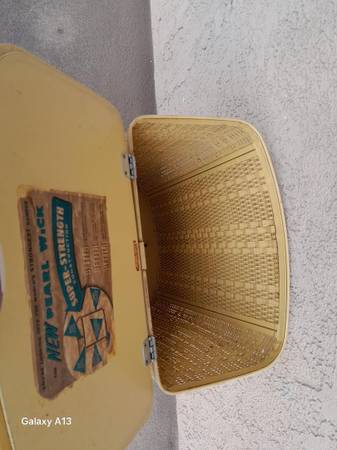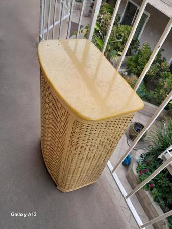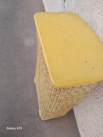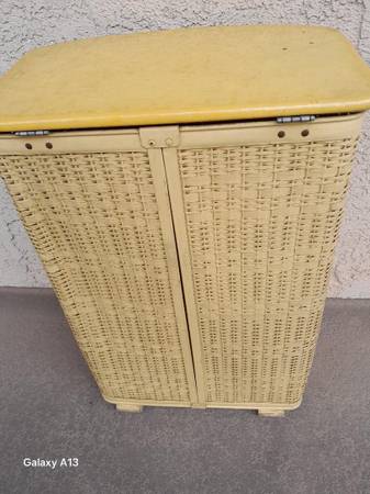 Vintage Laundry Hamper I VTG Pearl Wick Yellow Upright Wicker Laundry - $199 (Sherman Oaks)
