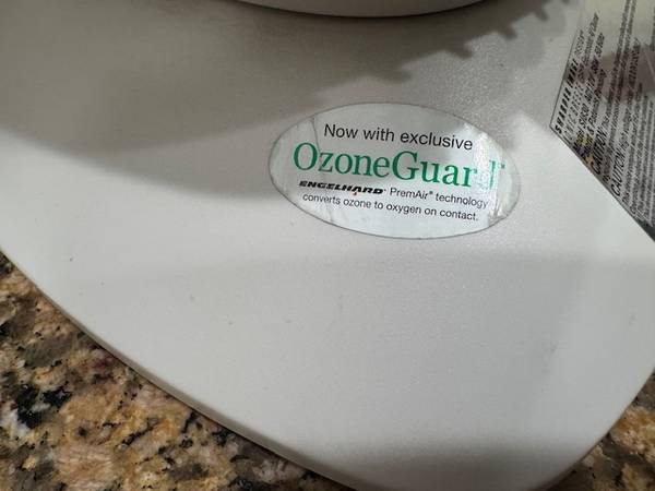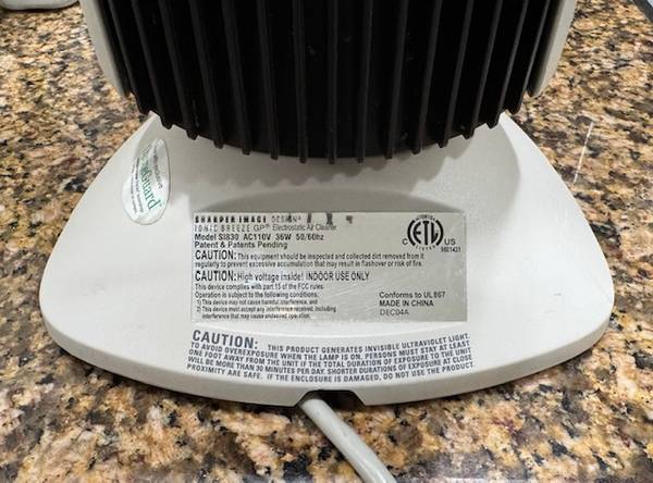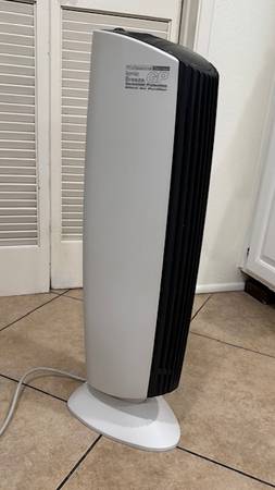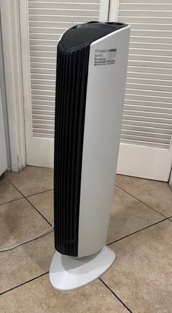 Ionic Breeze silent air purifier with a sleek design. We purchased this new and have mostly just stored it. It has germicidal protection and is the professional series. It traps particles on stainless steel plates which you wipe clean with a cloth (no expensive filters to purchase). 29" tall and model S1830.