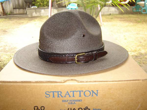 with slight curl. Flat double brim, S-40DB, version is worn by most State/Border Patrols. (also great for Hiking trail hat)