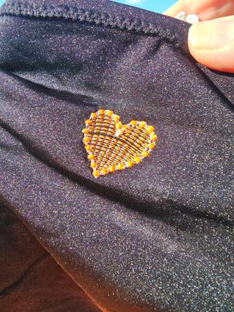 Stretchy black lycra at chest for easy stretch & cleaning.