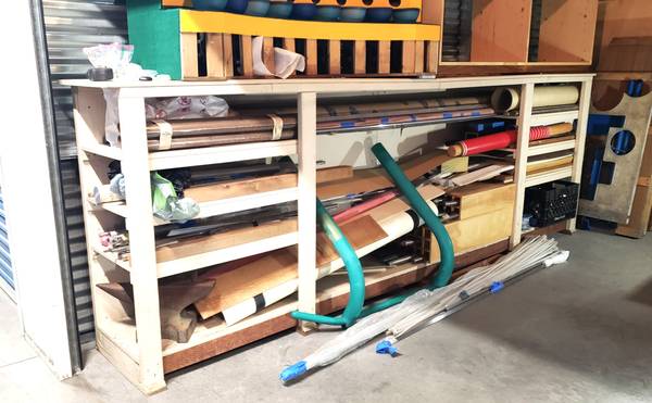It is now in our storage facility holding around $7,500 in tool steel bar stock, Stainless steel, even a 112 pound anvil that is 22 inches long (last picture was taken in the 15 foot long storage unit)