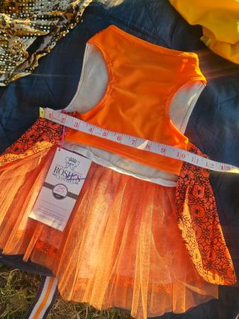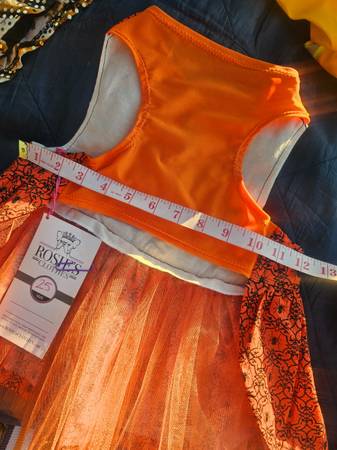 Brand new Rosie's Clothes Halloween dog dress π§‘π·π πΈ Or dog costume with super cute Halloween theme featuring orange background with black spiders & sparkley gold shimmerπ§‘ Stretchy orange lycra...