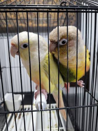 I have a beautiful pair of conure. Male is mooncheek and female is pineapple. They are a breeding pair. They have produced mooncheek and pineapple babies. Local pick up and rehoming fee will apply.