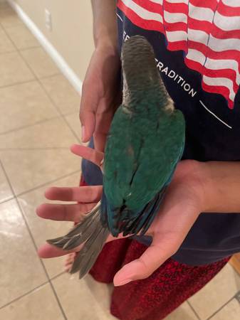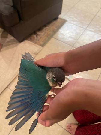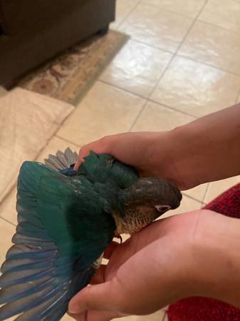 I had four conure babies. Now only 2 turquoise yellow left. They are ready for the new home. Rehoming fee will apply and local pickup. Thank you