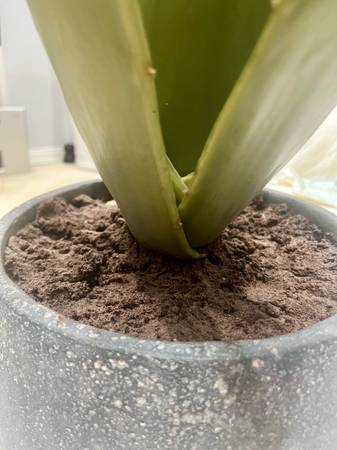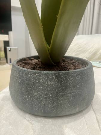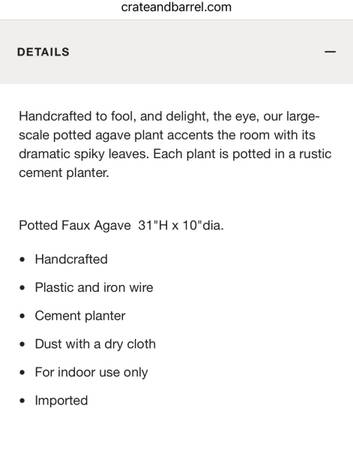 Handcrafted to fool, and delight, the eye, our large-scale potted agave plant accents the room with its dramatic spiky leaves. Each plant is potted in a rustic cement planter.