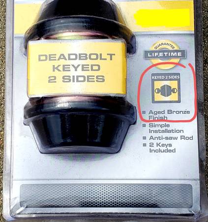 DOUBLE Cylinder Deadbolt (keyed both sides) - general for sale - by...