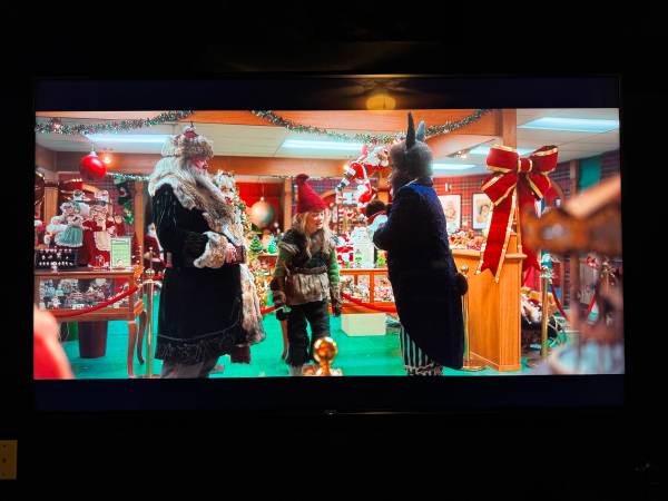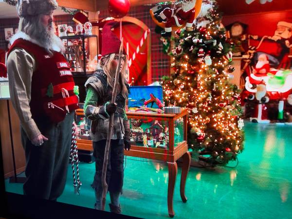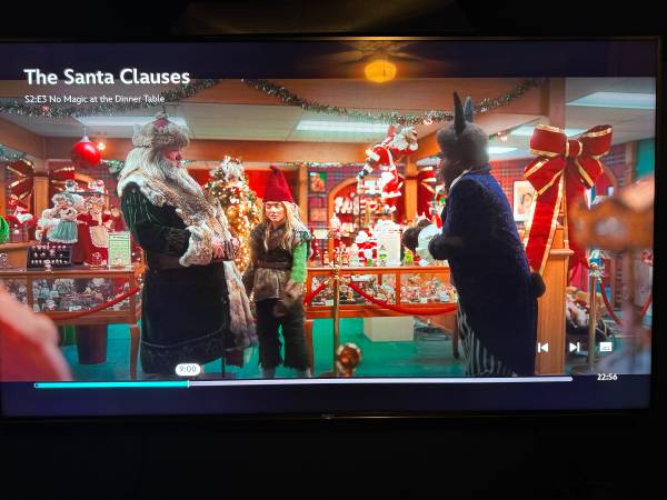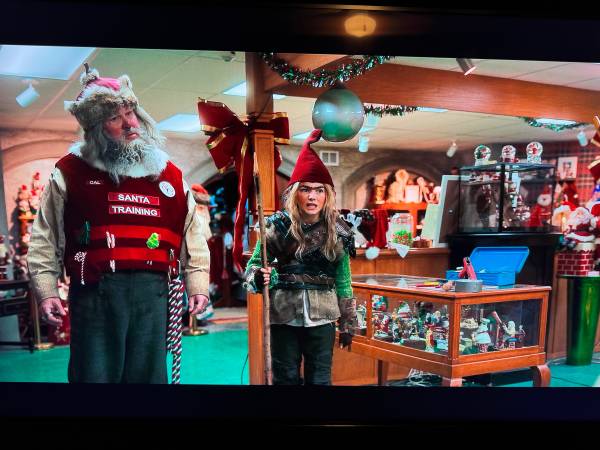 This is a glass display or retail cabinet with sliding glass door. It is one of the prominently displayed cabinets in the Disney series The Santa Clauses