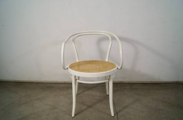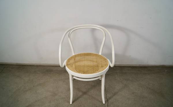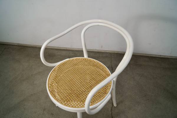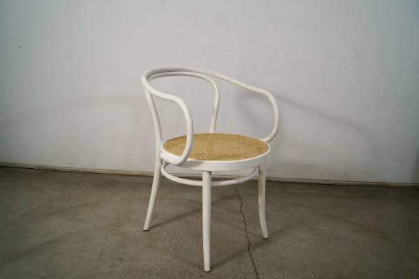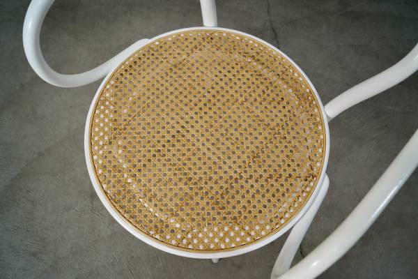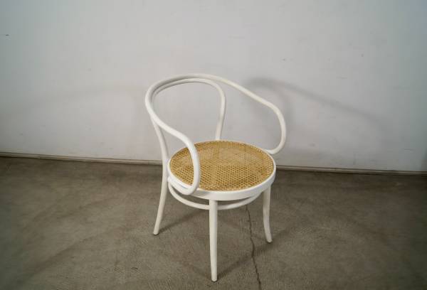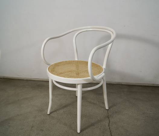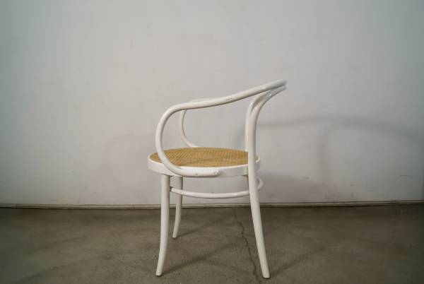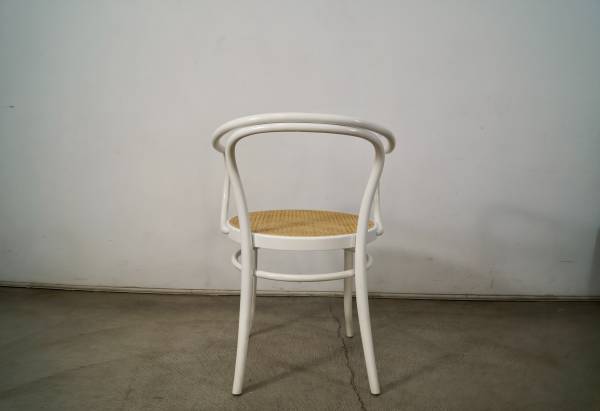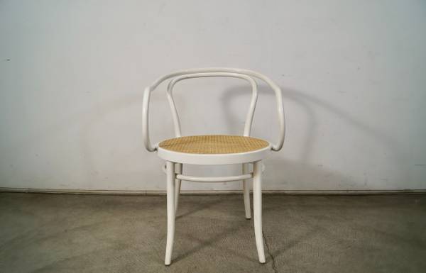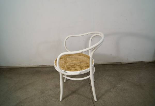 Vintage Thonet No. 30 armchair for sale. Classic design by Michael Thonet designed in 1857. This is the version in white, and has the caning in excellent condition. The chair frame is solid and also in great original condition. Great accent chair that would work as a dining chair, armchair, desk chair, or side chair. The measurements are 30 3/4" tall x 18 1/2" seat height x 21 1/2" wide x 23" deep.