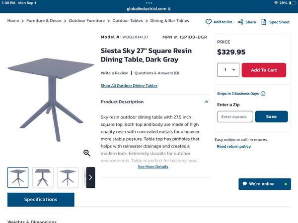 Brand new Siesta Exclusive Sky outdoor table in the box. Table cost over $300 + tax earlier this year and not used. I have lightly used ones for $100.