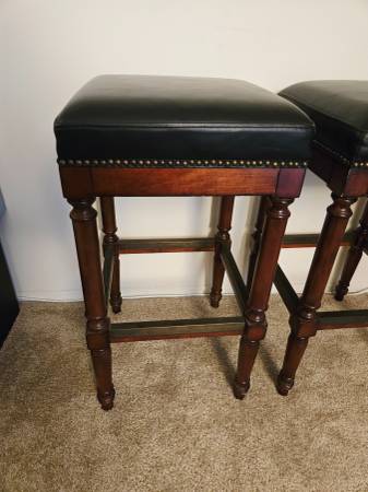 These barstools have a sturdy, hand-turned, solid-hardwood frame and deeply cushioned leather seat for long-lasting comfort.