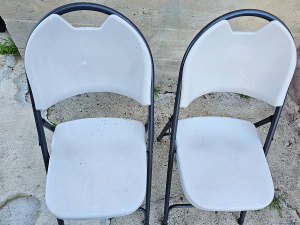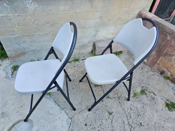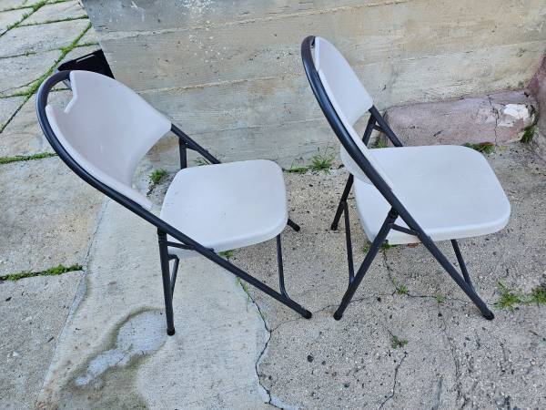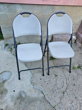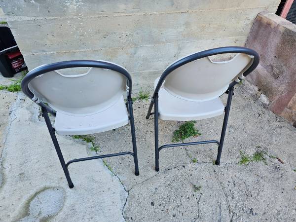 2 Pieces Heavy Duty Folding Steel Chair Metal/Plastic 400 Lb. Capacity Good, Preowned Condition. Can show some signs of use/storage life - Please see the pictures for details. The chairs are 34...