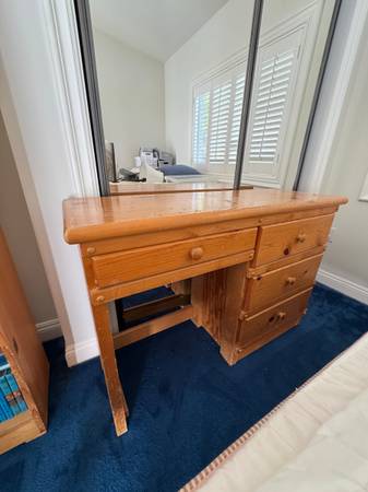Sturdy and functional wooden desk, perfect for a workspace, craft area, or student setup.
