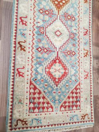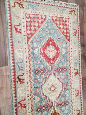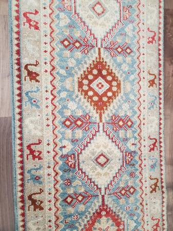 Brand new 2.6 ft x 8 ft hand knotted 100% wool geometric runner rug. Never walked on. I have other rugs and runners as well.