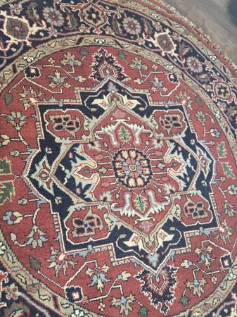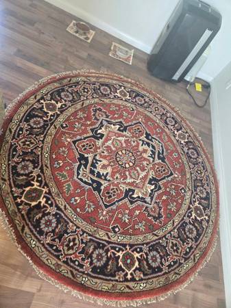 New large 100% hand knotted wool round rug. 6 ft in diameter and never walked on. I have other rugs and runners.